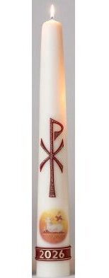 Ook dit jaar kunt u weer huispaaskaarsen bestellen. Op de paaskaars is het jaar 2026 geplaatst. Tevens is het Lam Gods te zien met het Chi Rho teken.
